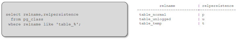 - normal table : write-ahead log 적재o, 미러링 o